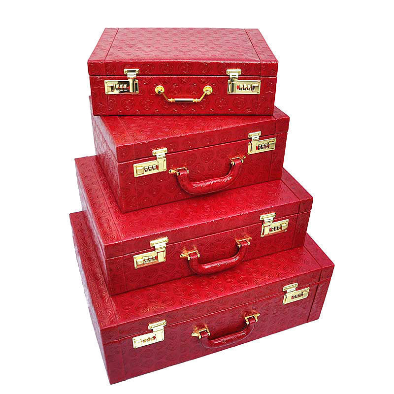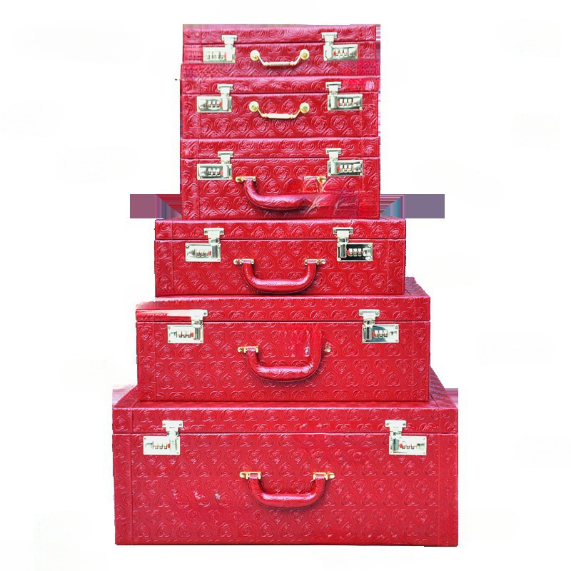 保存箱子收纳箱红色嫁妆结婚皮箱红陪嫁秀禾服纪念官箱手提密码箱