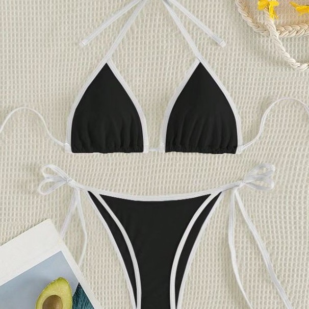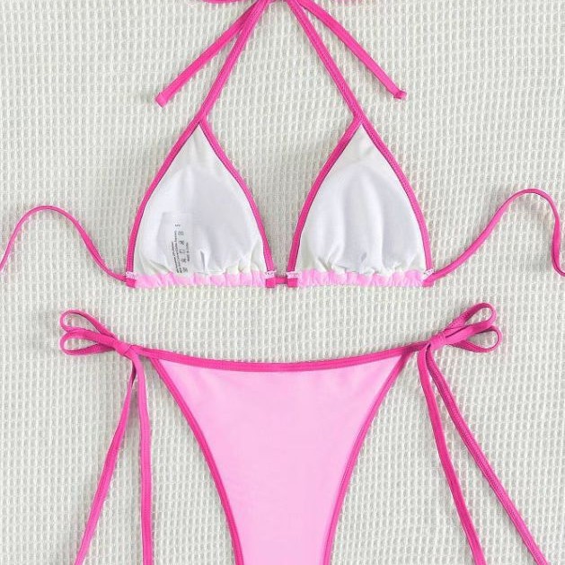 2025年新款欧美跨境亚马逊热卖性感挂脖系带三点式比基尼沙滩度假
