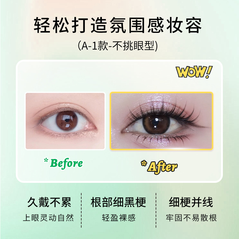 睫立颖A-1上睫毛懒人款自然仿真细梗眼睫毛批发一片式整簇假睫毛