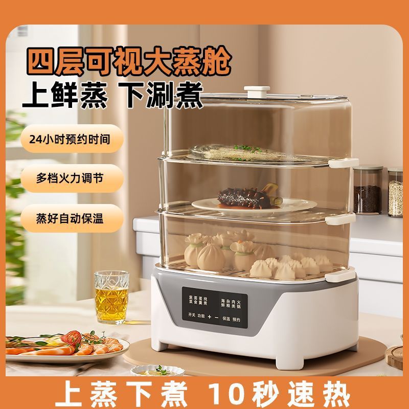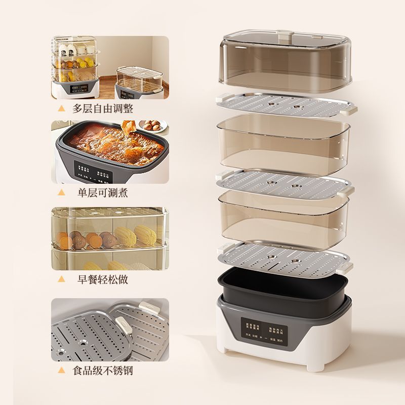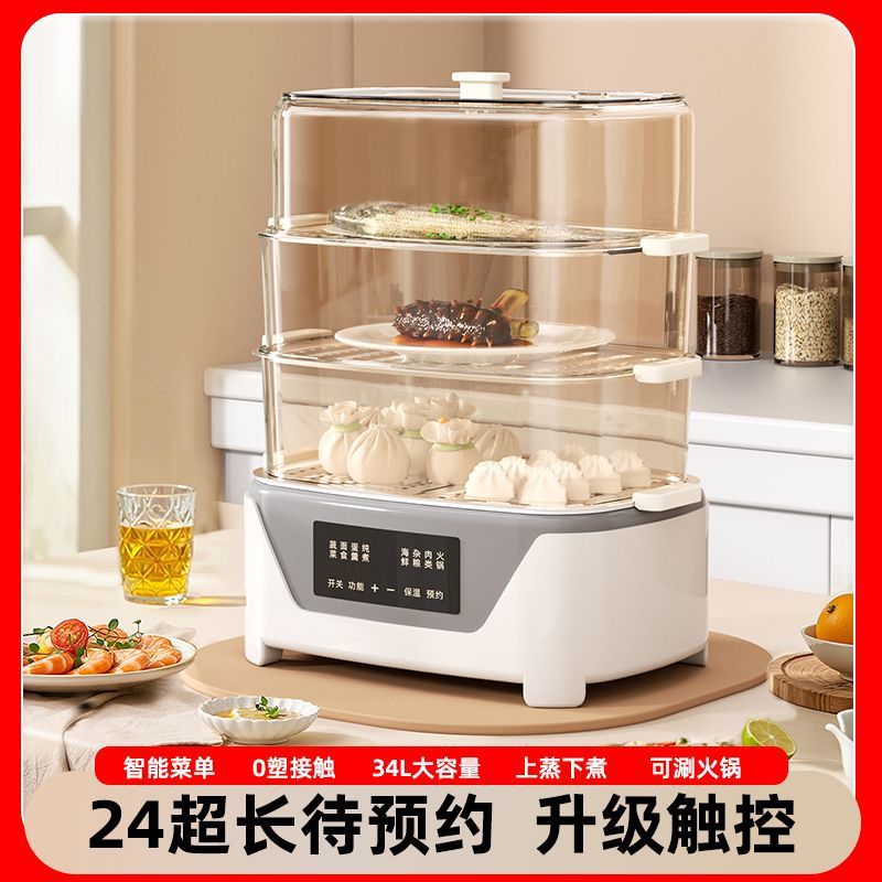 新款三层电蒸锅家用大容量蒸煮炖一体早餐机多功能火锅电蒸锅正品