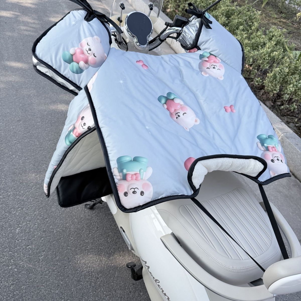 电动车挡风冬季加厚加绒防水电瓶车摩托车防雨加大加宽加厚北极绒