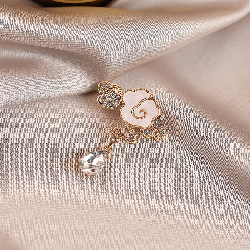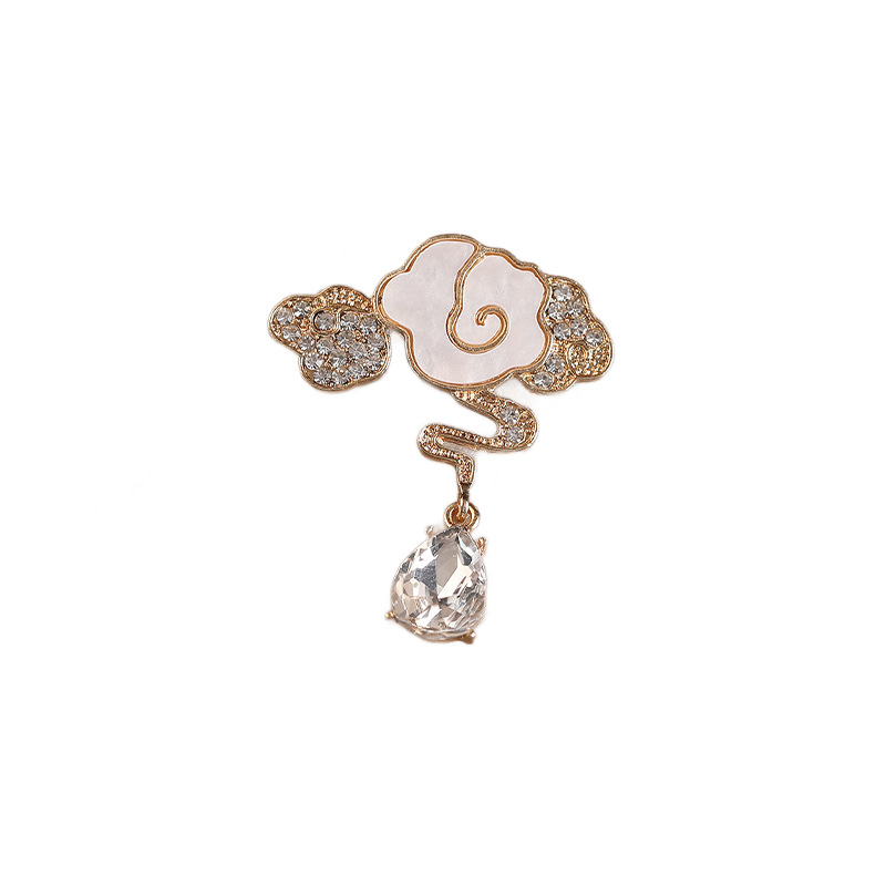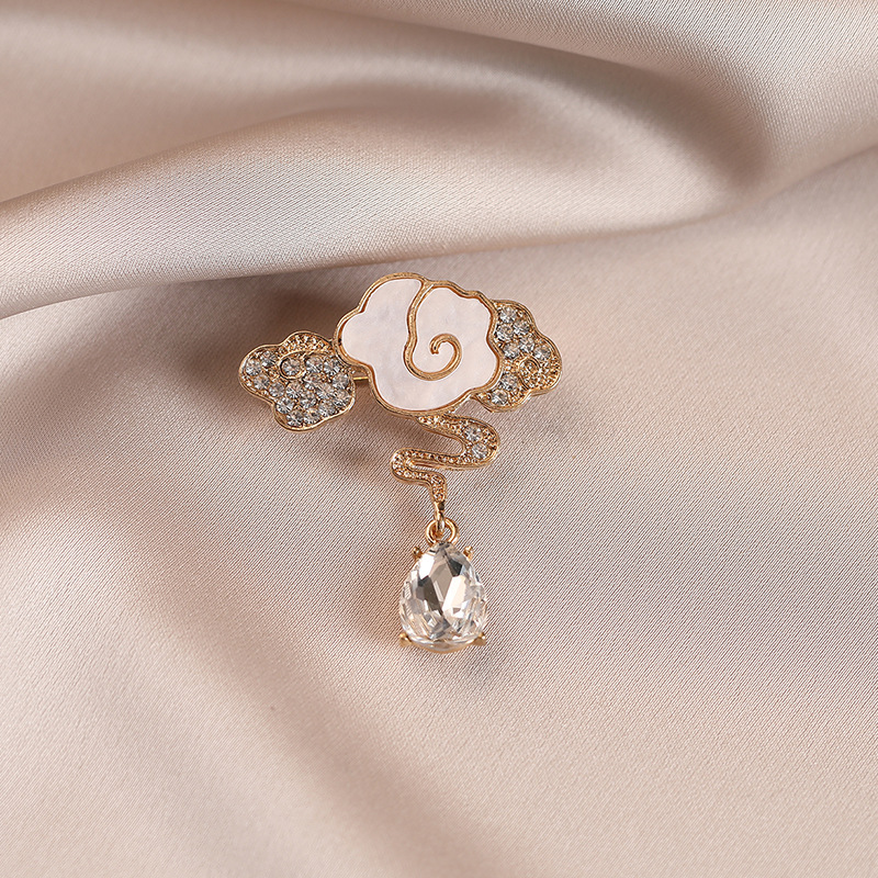 国风云纹镶钻胸针女高级感轻奢水滴胸花别针配饰时尚复古服饰批发