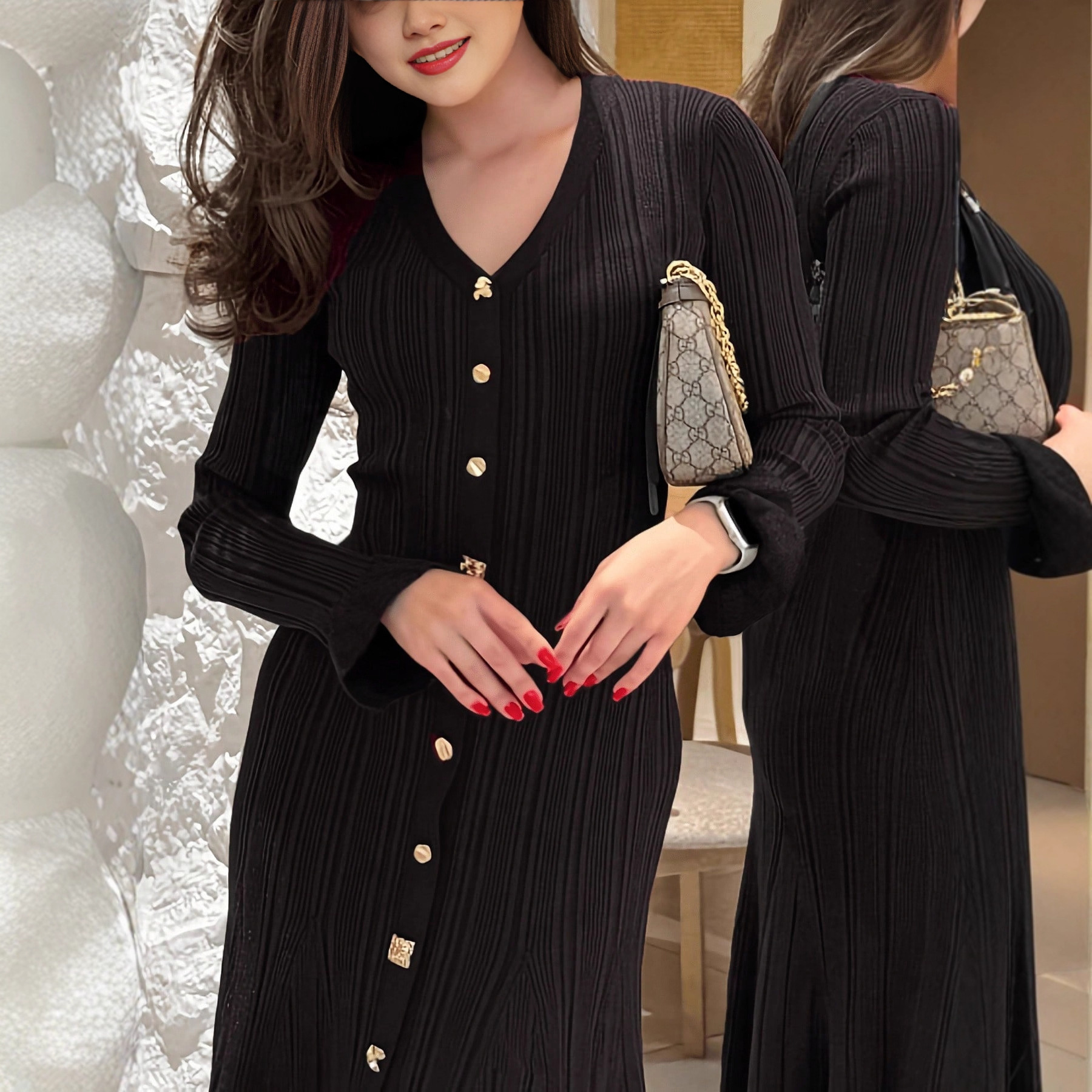| 适用场景 | 城市通勤 | 3 | 跨境韩国东南亚秋冬季新款收腰长袖针织连衣裙气质高档毛衣连衣裙批发 |