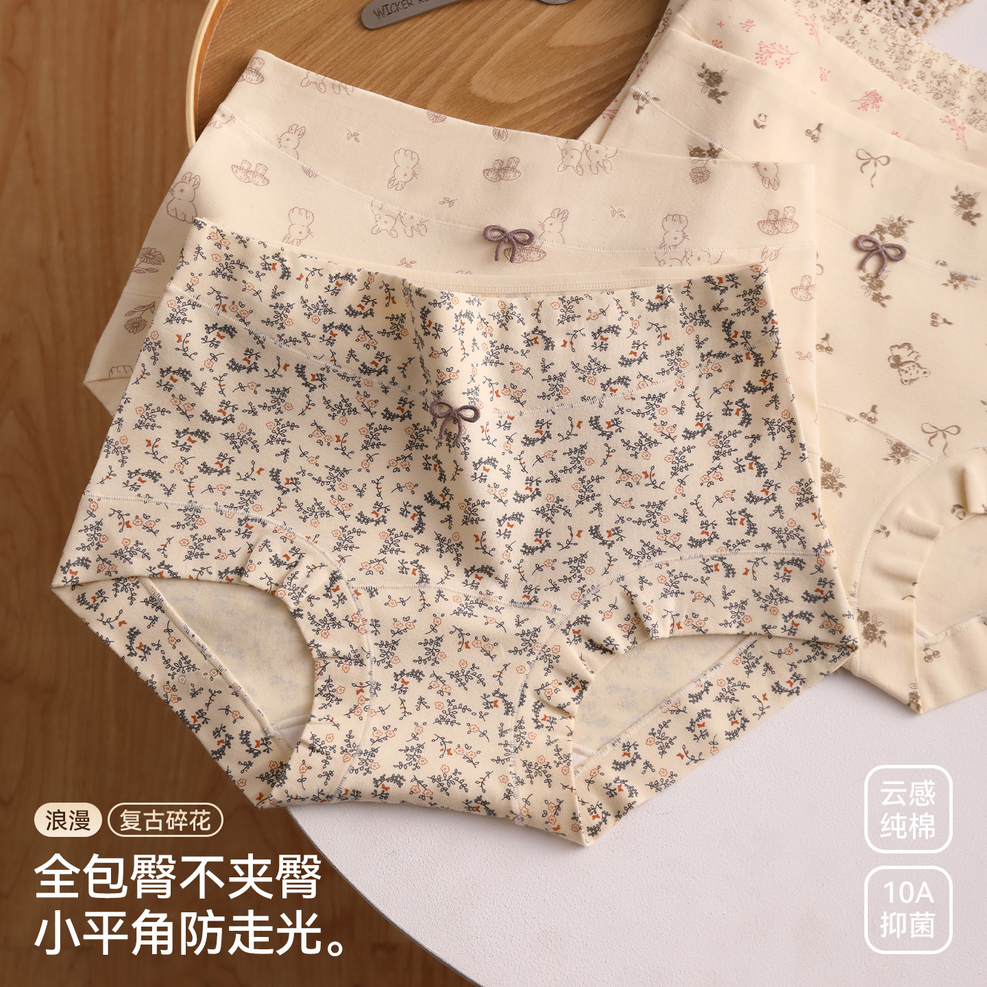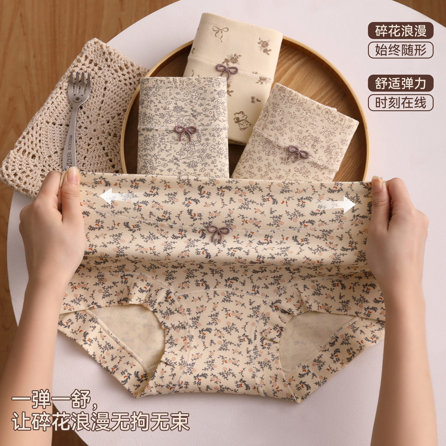 小清新碎花内裤女舒适棉质面料女士包臀透气甜美印花大码三角短裤