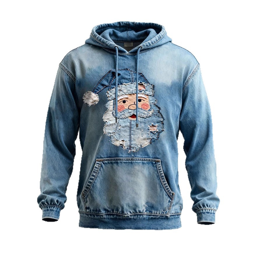 【跨境热卖】亚马逊速卖通3D数码印花圣诞老人连帽休闲男女款卫衣