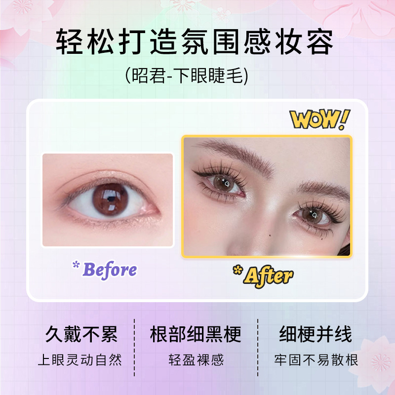 睫立颖昭君下睫毛自然浓密新手仿真胶水款厂家批发分段式假睫毛