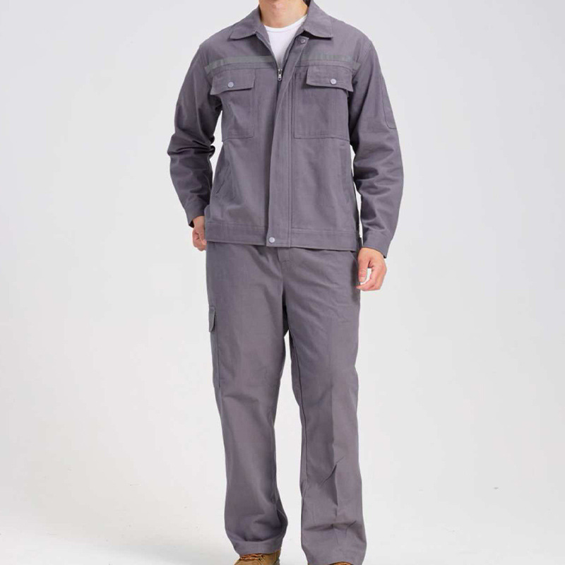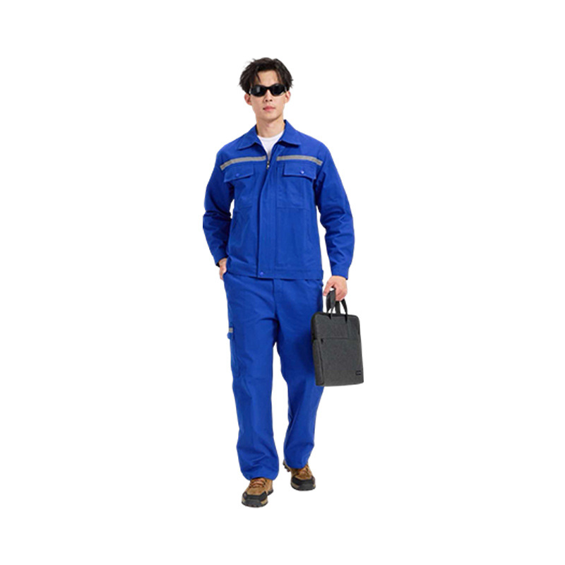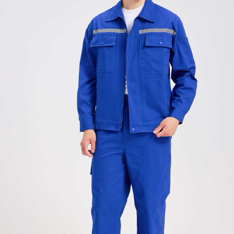 全棉加厚纱卡布料反光春秋套装加印LOGO不易磨损易干工作服劳保服