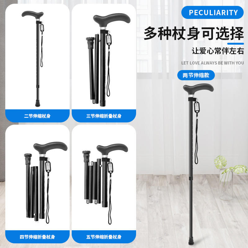 铝合金防滑老人杖大小四脚老年人拐杖塑料把手厂家供应登山杖