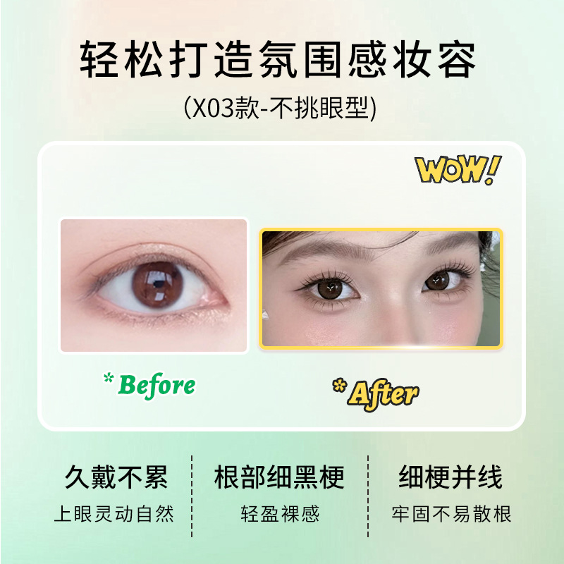 睫立颖X03上睫毛妈生感自然仿真细梗眼睫毛批发一片式整簇假睫毛