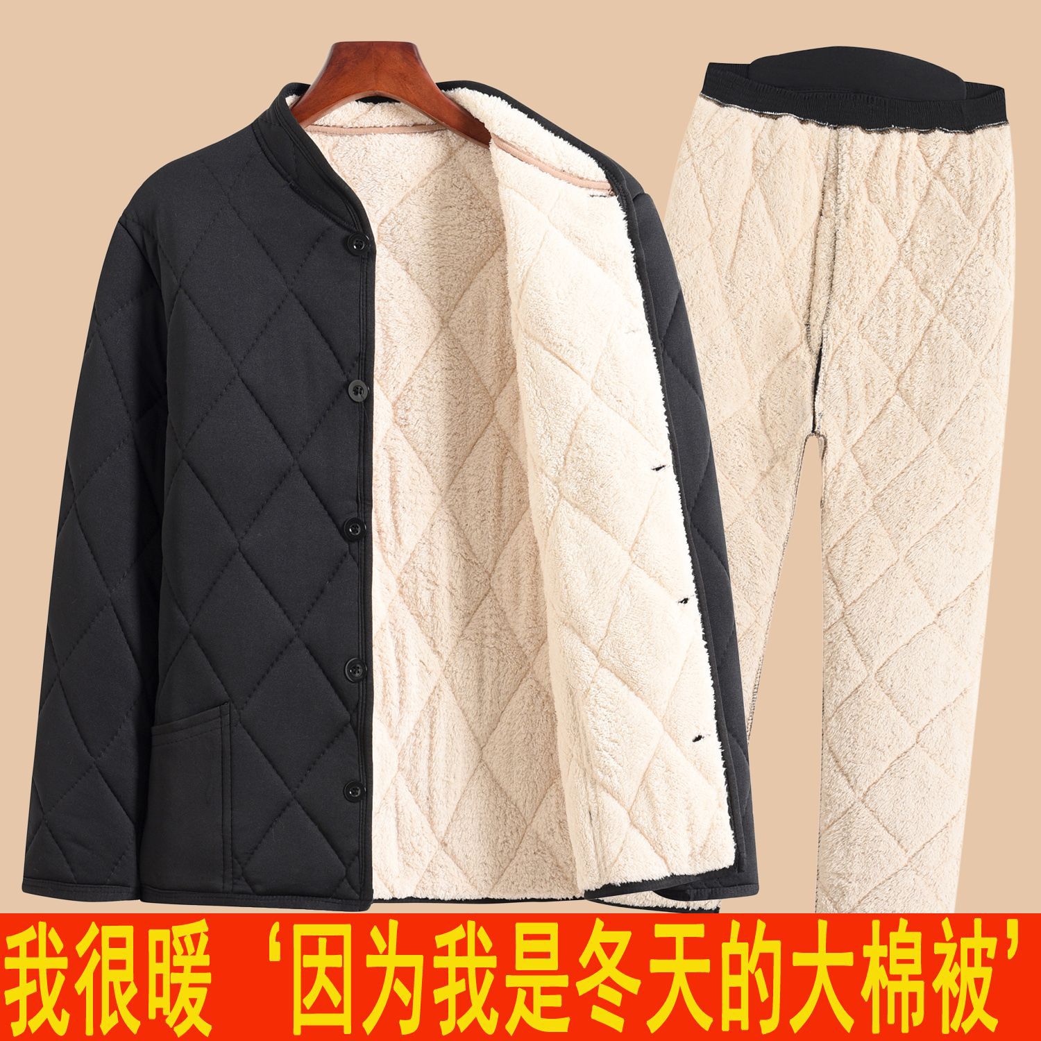 | 颜色 | 灰色套装【棉袄+棉裤】 | 尺码 | 2XL 体重【100-135斤】 |
