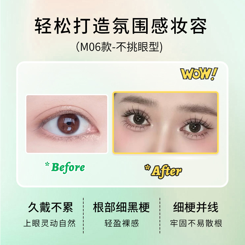 睫立颖M06上睫毛整簇妈生感自然仿真卷翘一片式厂家批发假睫毛