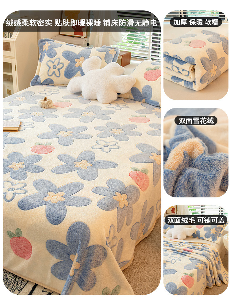 冬季毛绒牛奶珊瑚法兰绒毯单件床单加绒防滑毛毯垫单宿舍加厚被单