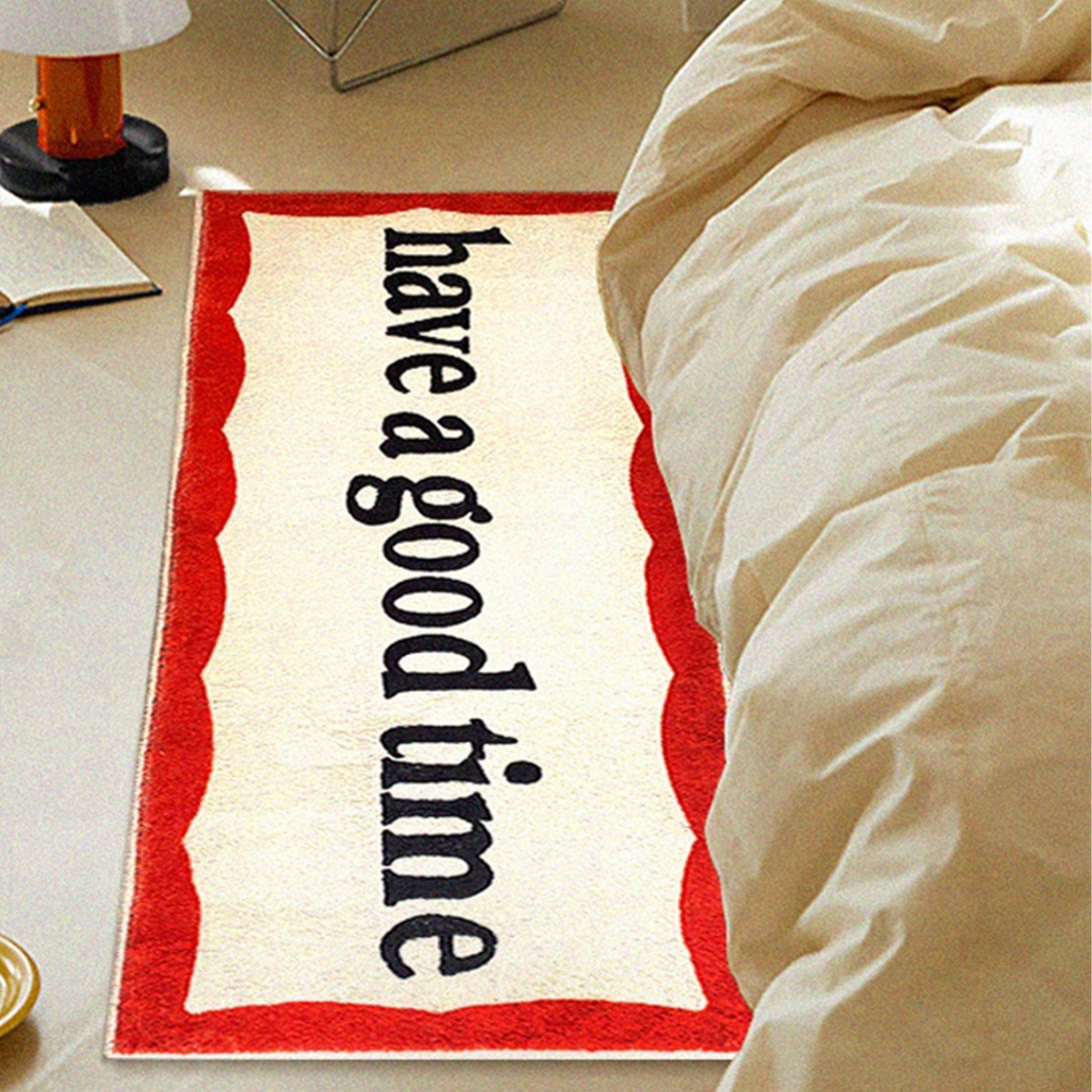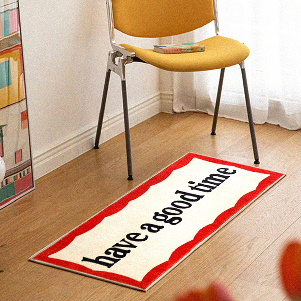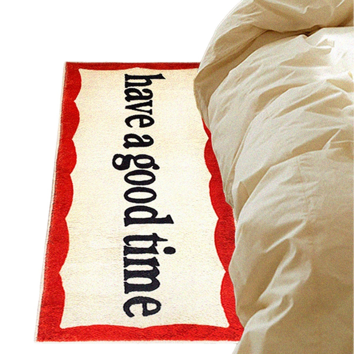 ins风红色字母床边毯家用房间卧室长条地毯窗户阳台亲肤飘窗垫子