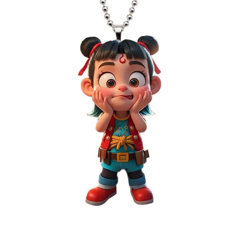 创意可爱捧脸小哪吒2d亚克力挂坠跨境车载内新款平面挂件背包挂饰