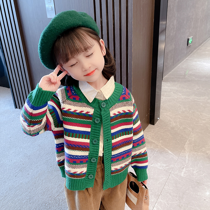| 是否连帽 | 不连帽 | 颜色 | 绿色条纹开衫毛衣外套. 140 |