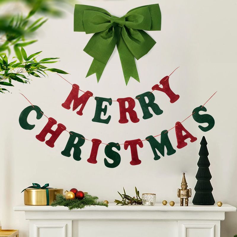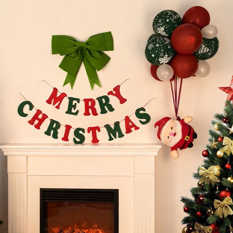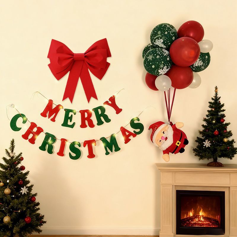 圣诞装饰拉旗蝴蝶结圣诞老人气球商场橱窗拉花拉旗场景挂饰布置