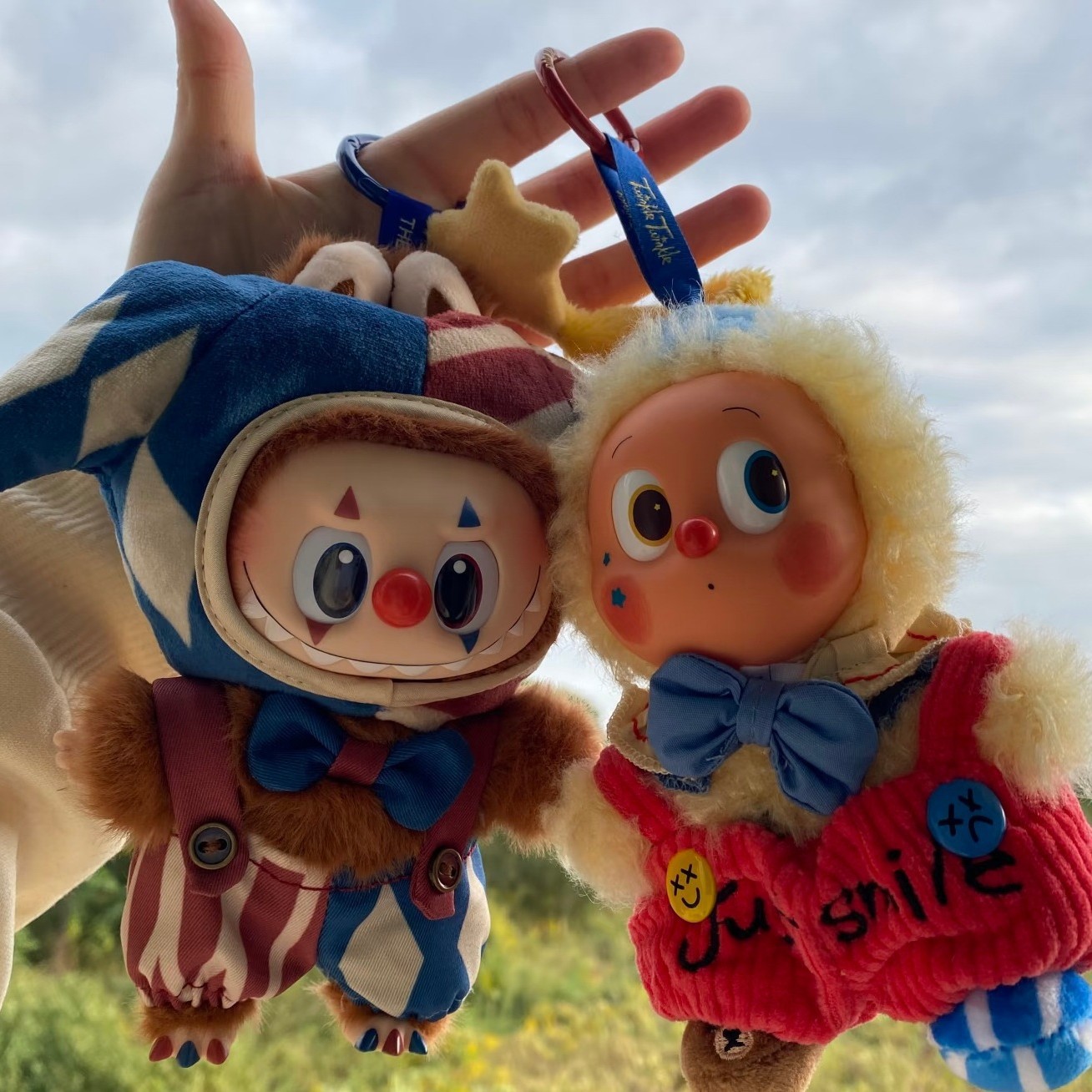 潮玩LABUBU万圣节抛球小丑拉布布彩虹豆丁圣诞搪胶毛绒挂件公仔