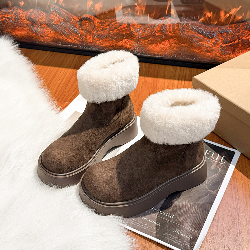 跨境雪地靴女2025秋冬新款厚底增高雪地靴加绒勃肯短靴毛毛棉鞋子