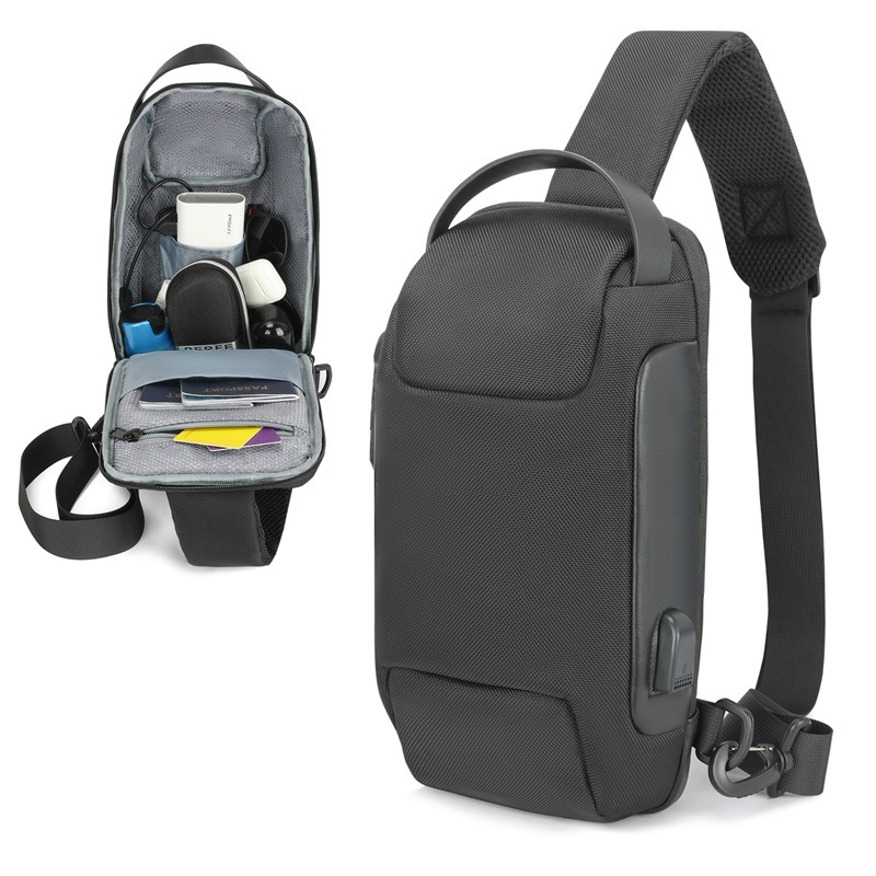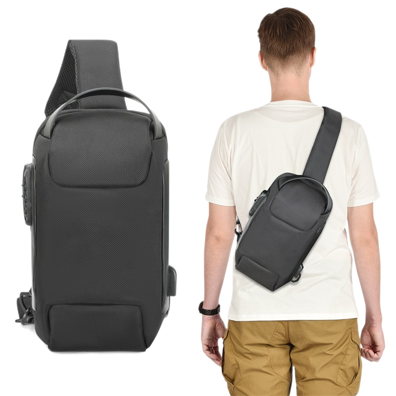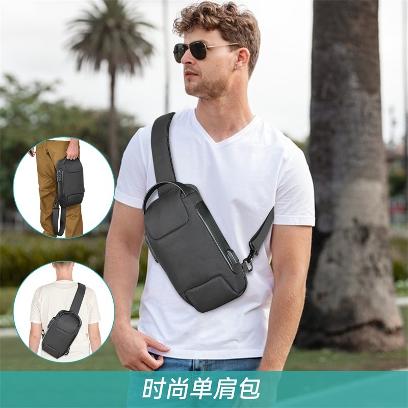 新款男士机能单肩包商务韩版斜挎包潮流跨境背包带usb密码锁胸包