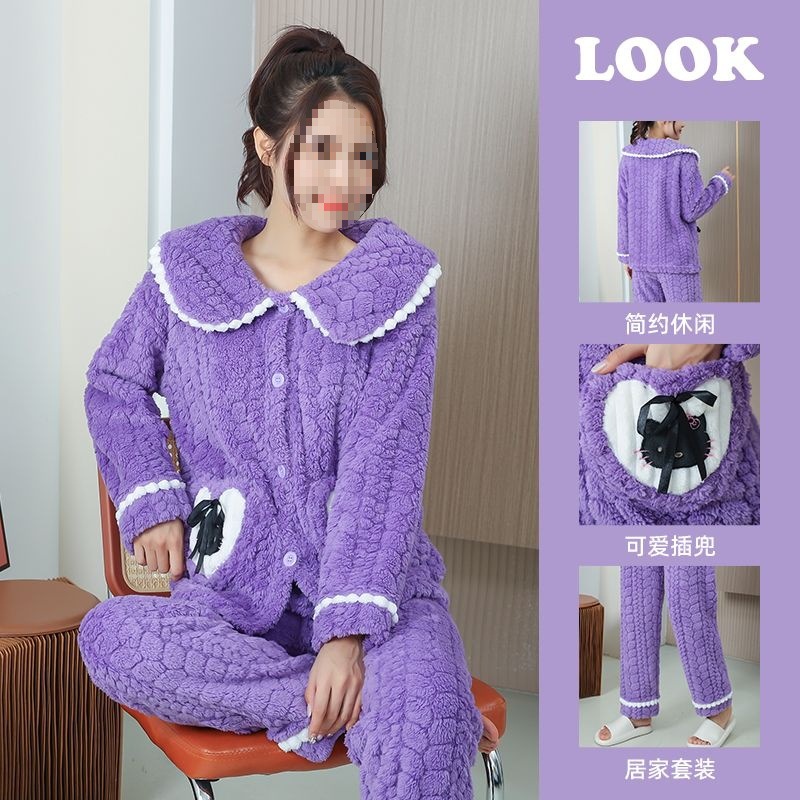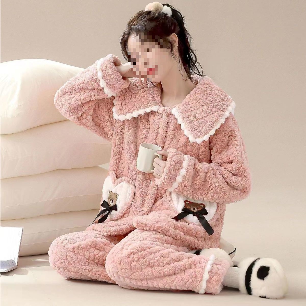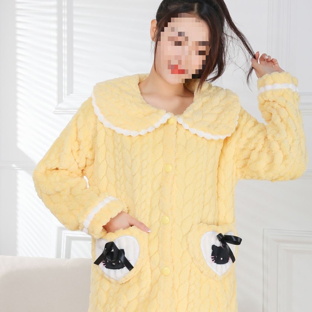 25新款珊瑚绒法兰绒开衫睡衣女士胸垫冬季居家外出穿加厚零度以下