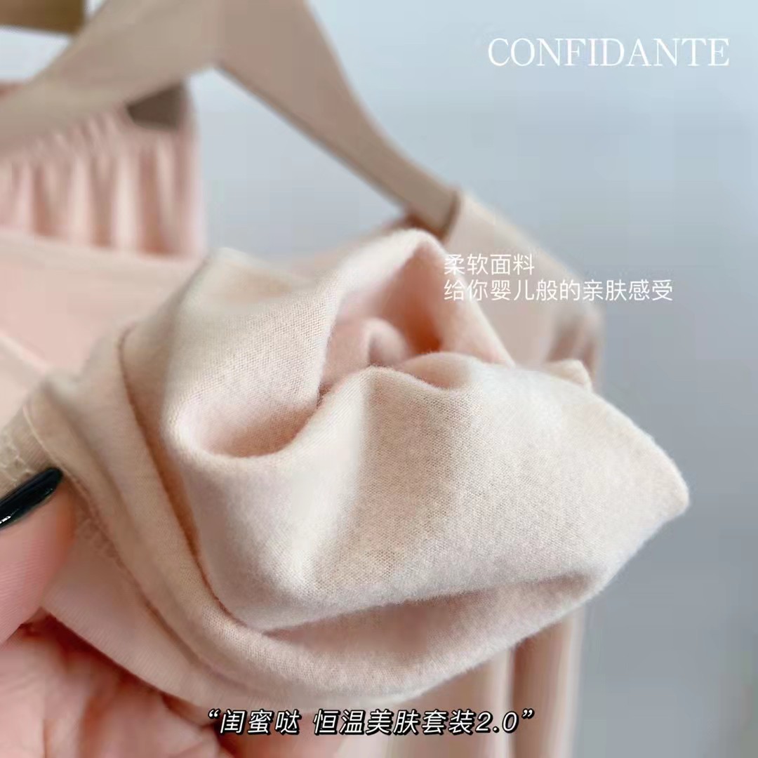 闺蜜哒恒温美肤套装2.0秋衣秋裤女保暖内衣弹力圆U领薄款打底衫女