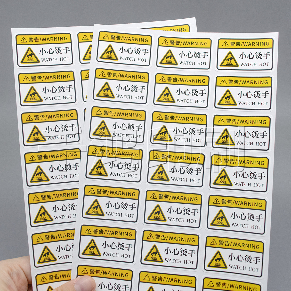 小心烫手警示标PVC不干胶防水标签贴纸防烫伤标识热水当心烫手贴