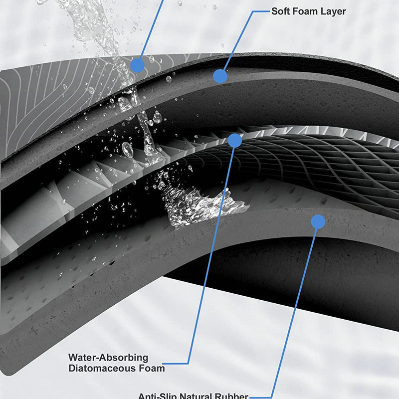 波浪硅藻泥地垫浴室防滑卧室耐脏耐用厨房垫卫生间客厅吸水脚踩垫