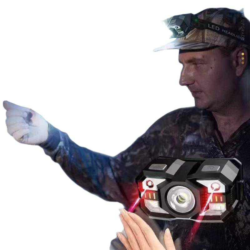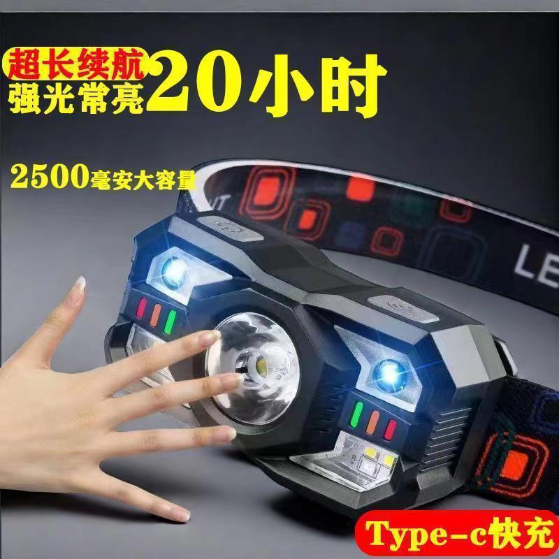 超亮感应头灯夜钓鱼专用超轻头戴式超长续航强光充电户外轻巧包邮