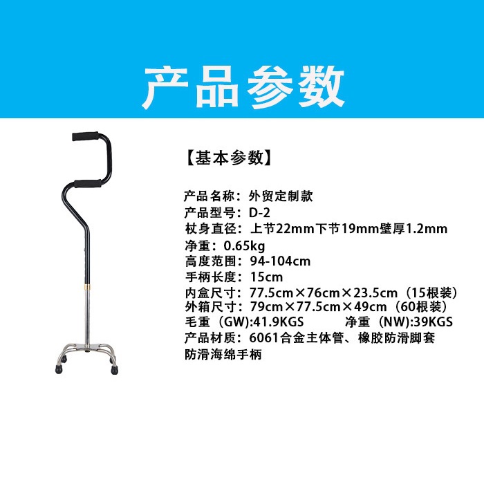FZK+ 富士康铝合金二段式四脚拐杖老人辅助起身拐杖