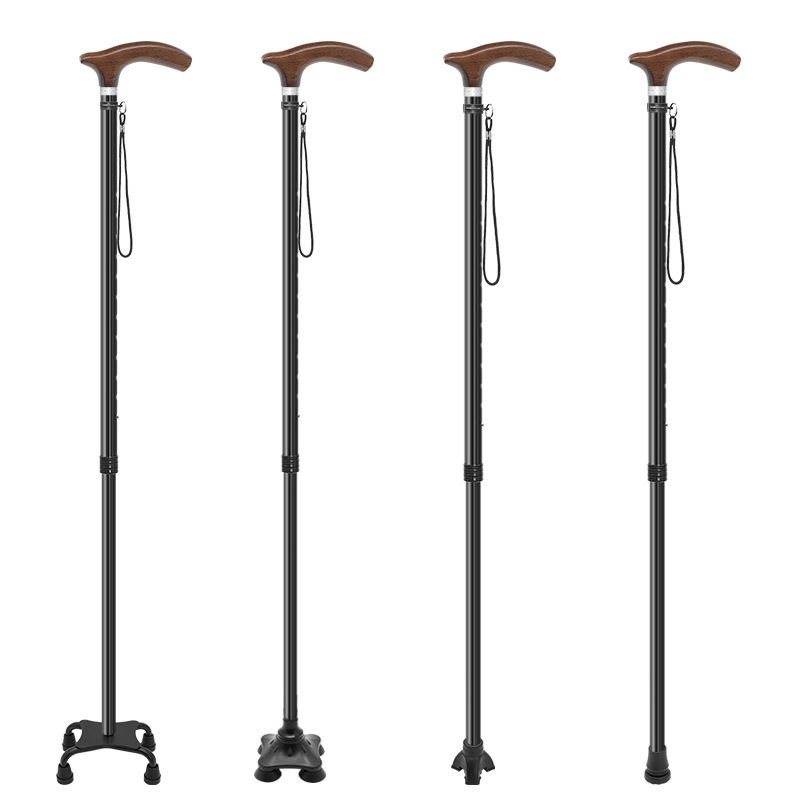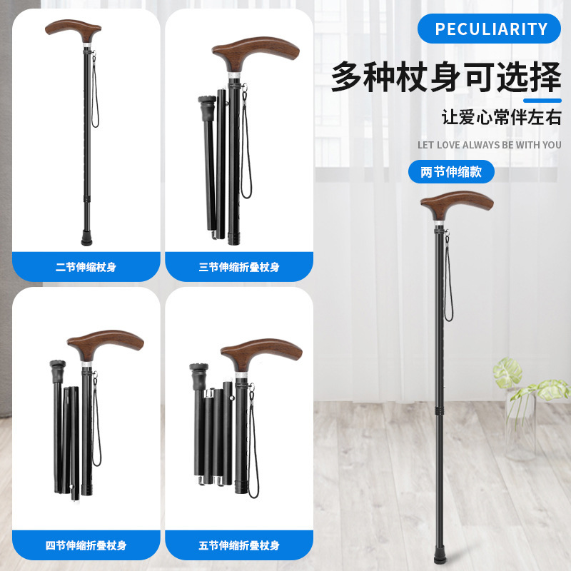 鸡翅木把手老人杖 可伸缩拐杖鸡翅木手柄老人拐棍铝合金老人杖