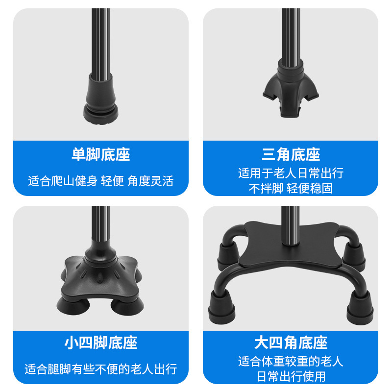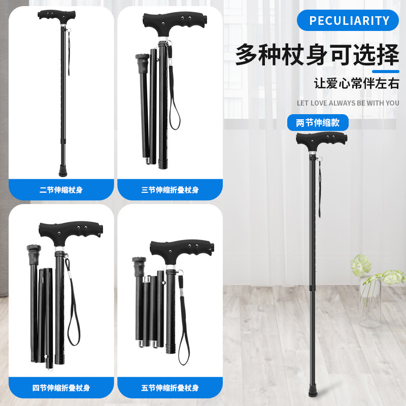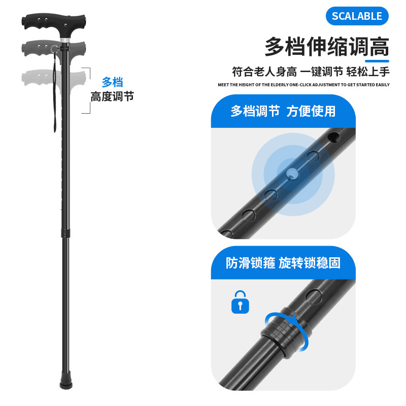 泰艾尔防滑铝合金老人手杖 手电筒功能款老人杖 折叠带灯伸缩助行