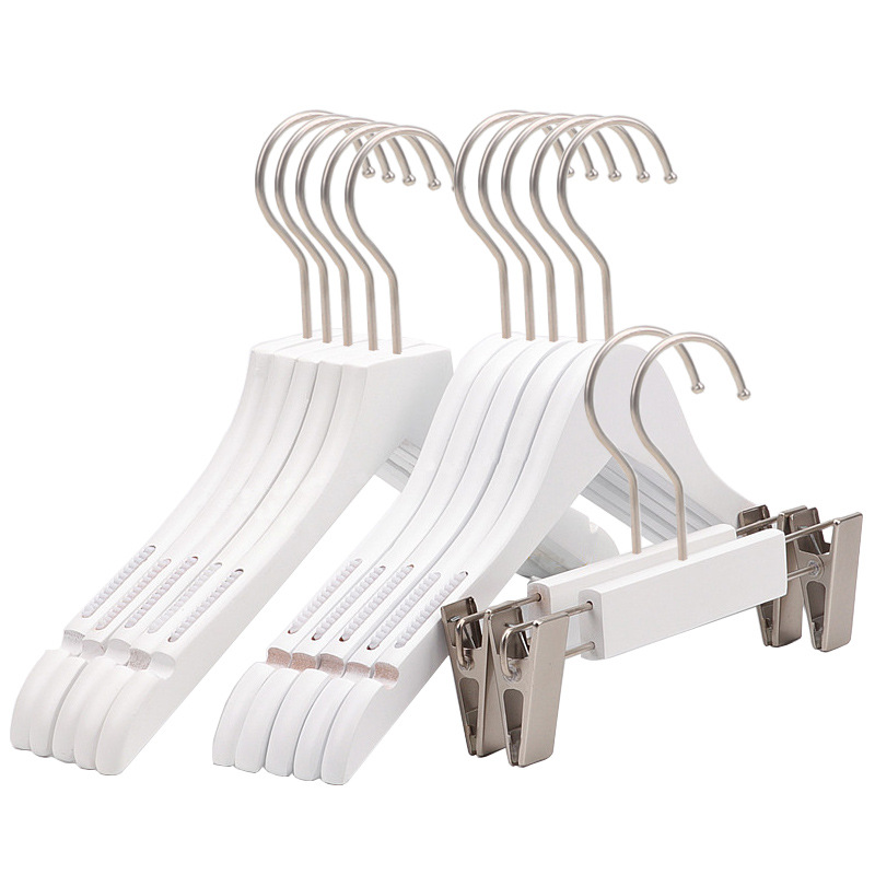 logo纯白女装衣架服装店专用实木衣架儿童木质防滑衣挂衣撑子