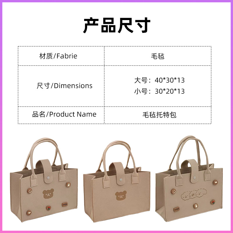 网红时尚托特包女生大容量夏季毛毡手提包班通勤包包妈咪购物