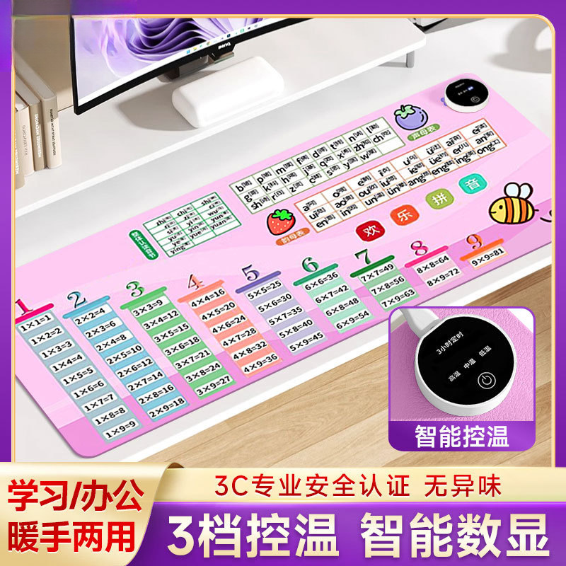 加热鼠标垫桌垫超大鼠标暖桌垫办公室加厚卡通文字家用发热桌垫