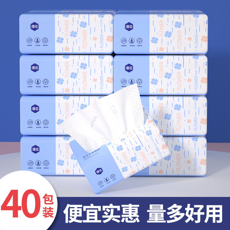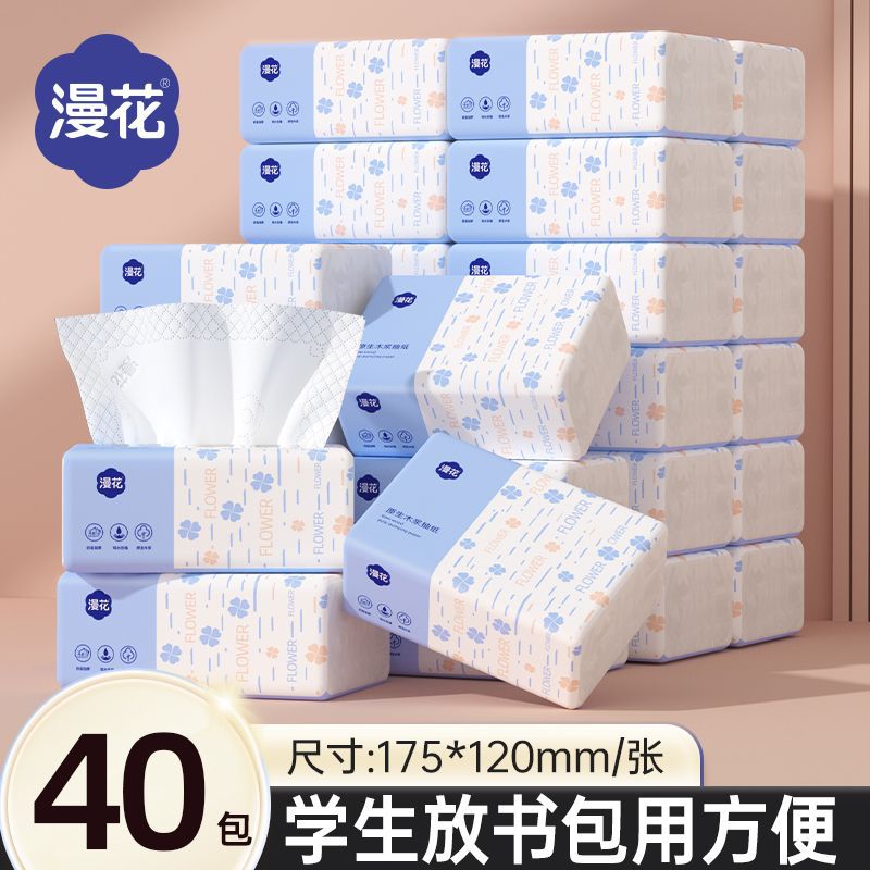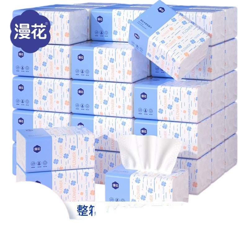 漫花抽纸餐巾纸300张整箱批发学生家用实惠装原木面巾纸巾卫生纸