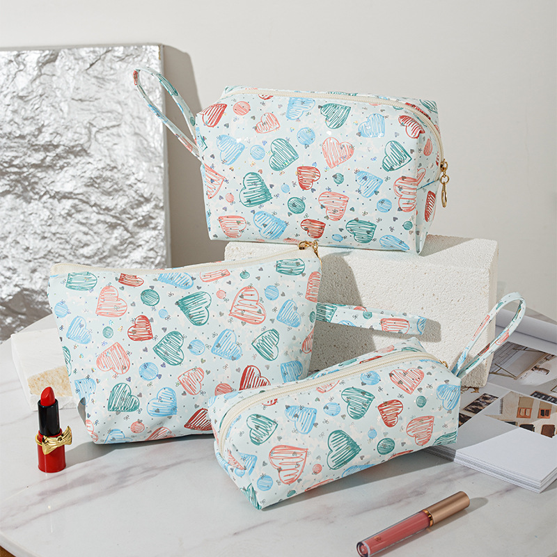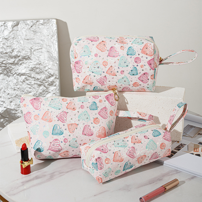 PU皮化妆包条纹爱心女士化妆品收纳包大容量旅行收纳包袋厂家直销