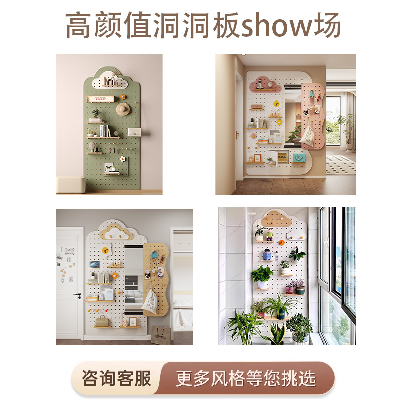 玄关洞洞板置物架木质展示收纳墙云朵收纳架墙上挂衣架默认项