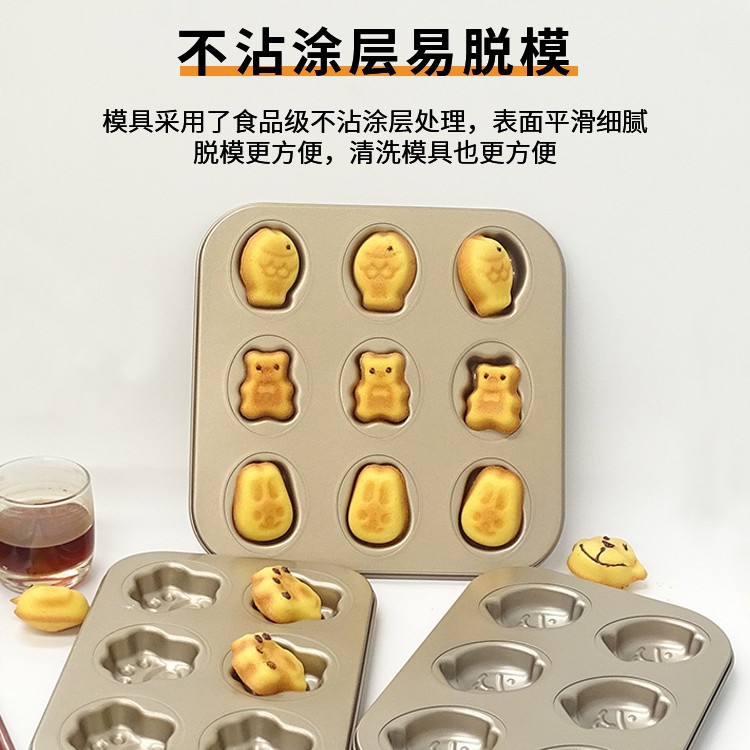 甜甜圈模具卡通动物儿童猫爪9连马芬小蛋糕烤盘烘焙家用烤箱工具