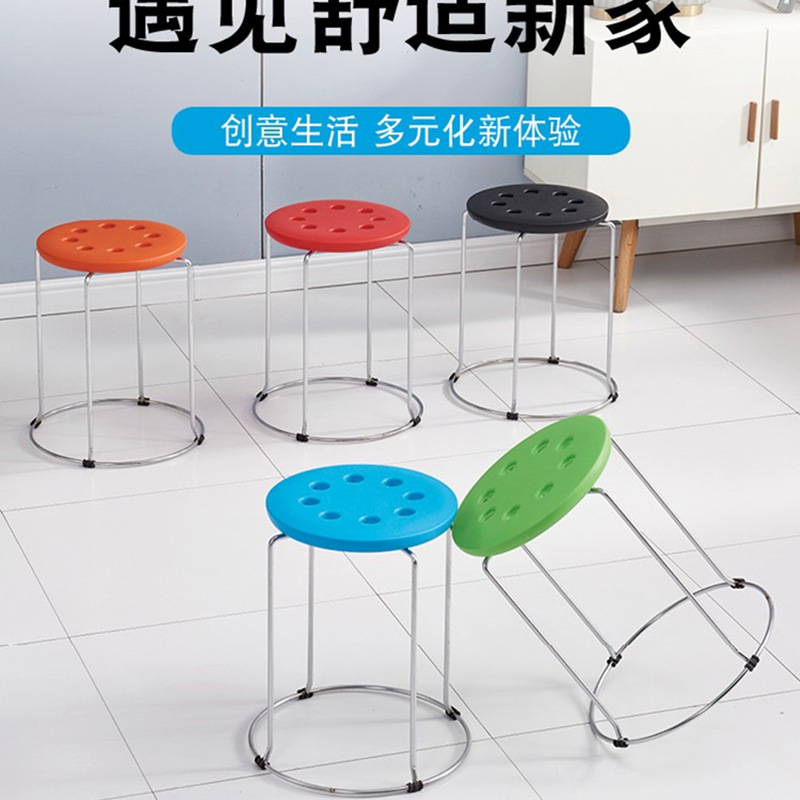 塑料圆凳子家用简约时尚高圆凳加厚钢筋凳套凳餐桌凳板凳子特价