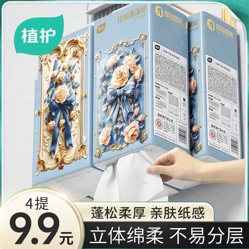 植护抽纸悬挂式抽纸盒挂式抽纸巾大包宿舍卫生纸厕所擦手一整箱批