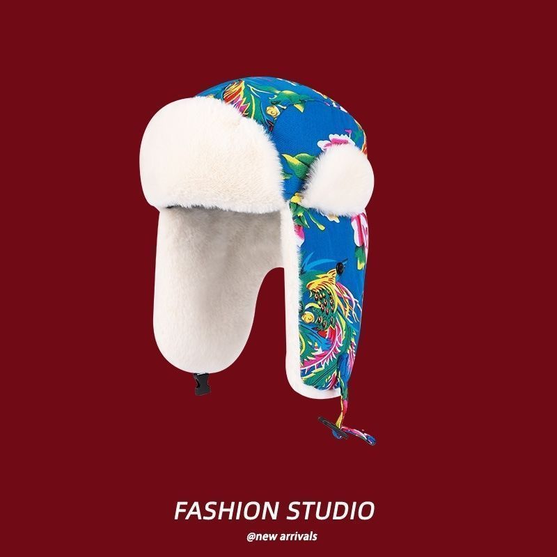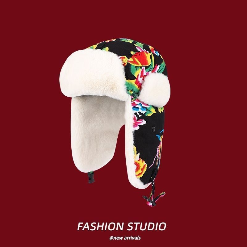 东北复古雷锋花布男女帽女冬季民族加绒加厚保暖防寒护耳帽子包邮