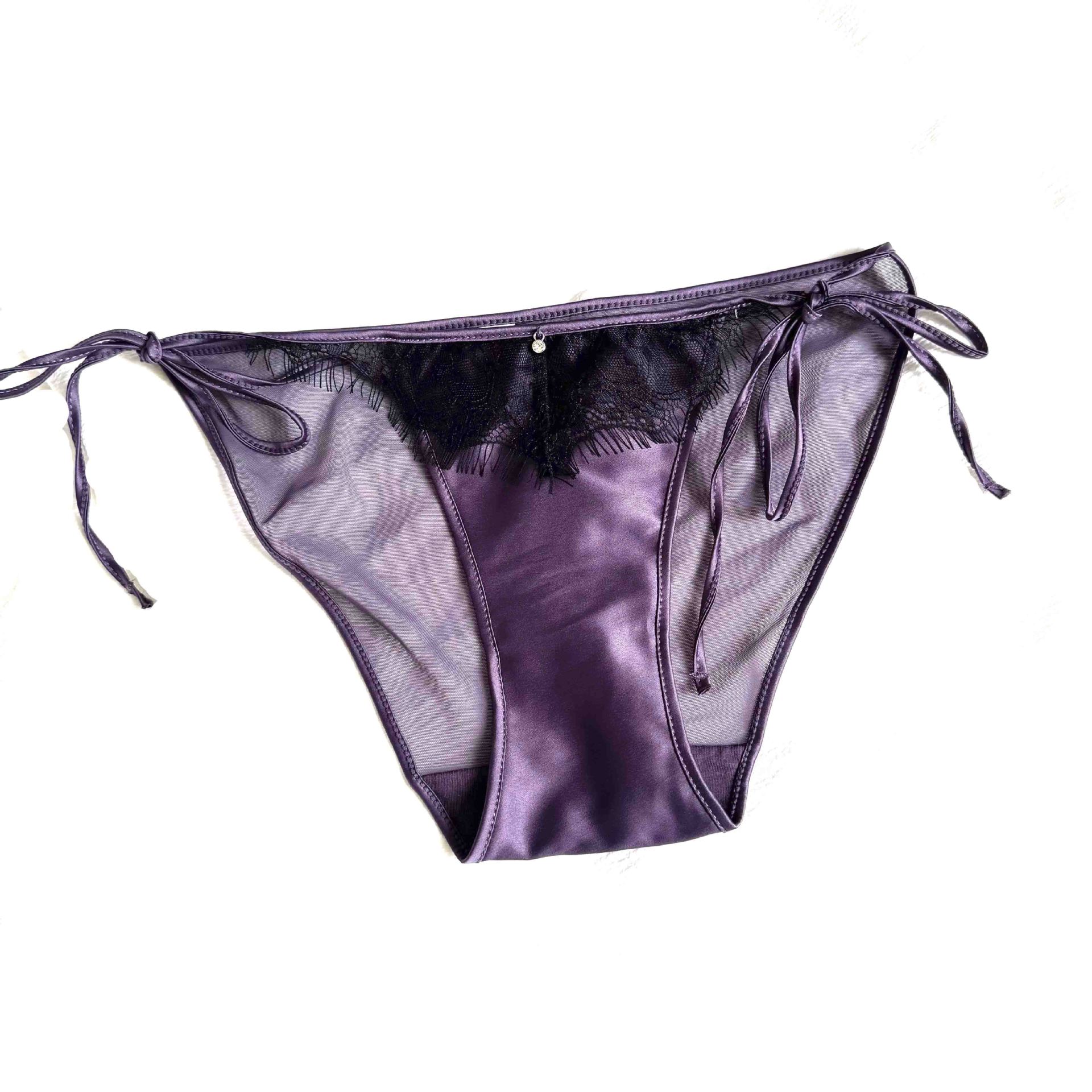 法式高级缎面柔光网纱女生性感蕾丝睫毛透气钻石绑带女士内裤