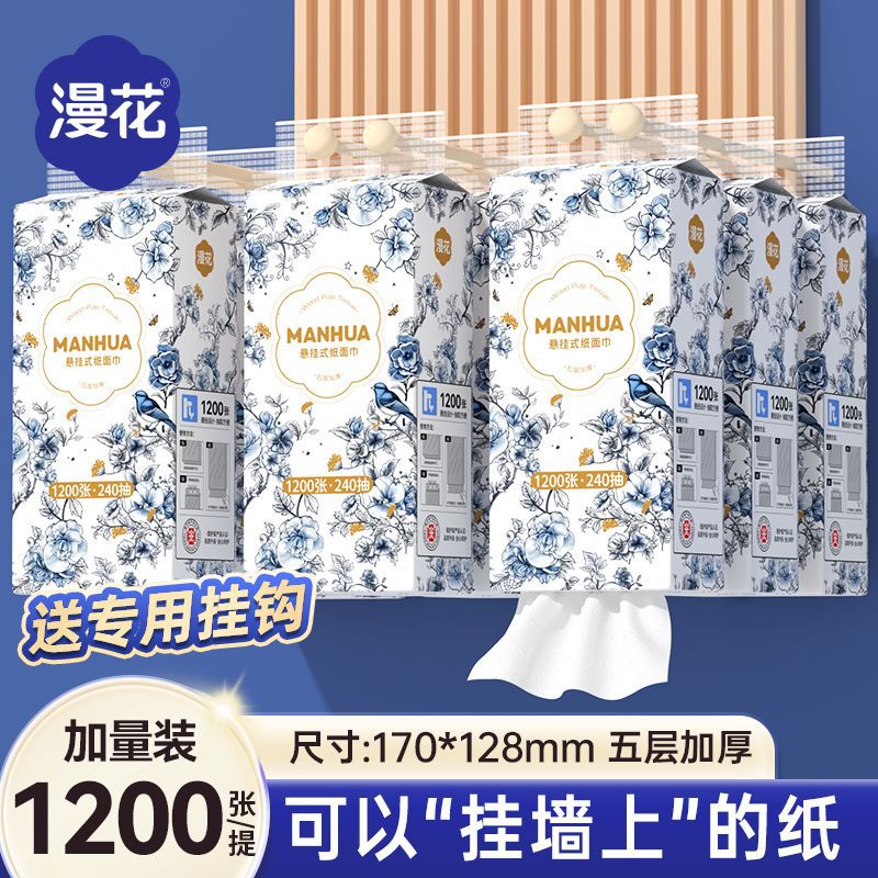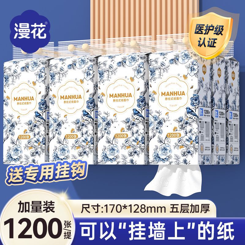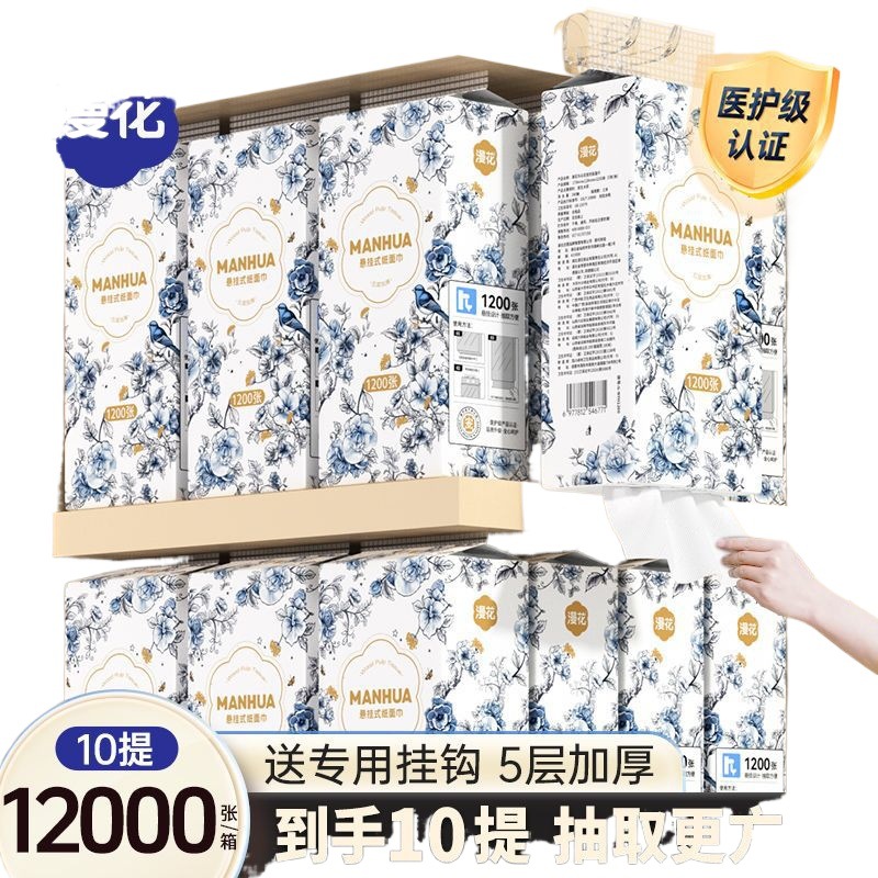漫花12000张挂式抽纸悬挂式纸巾底部抽整箱平板卫生纸家用擦手纸