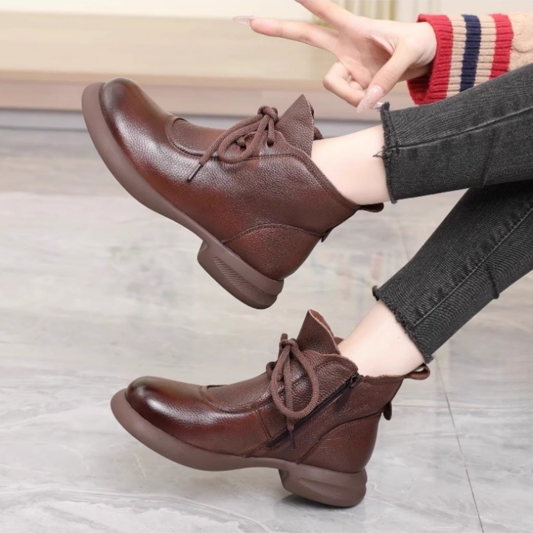 跨境冬季新款加绒保暖女士短靴显瘦气质防滑中老年马丁靴妈妈时尚