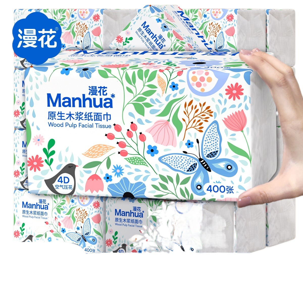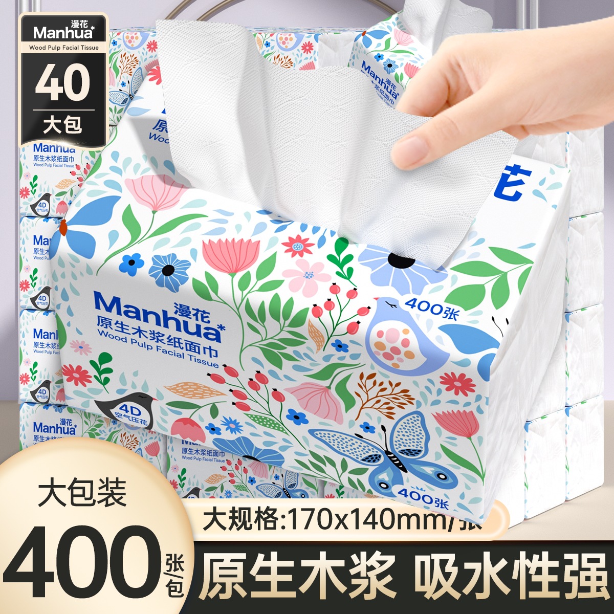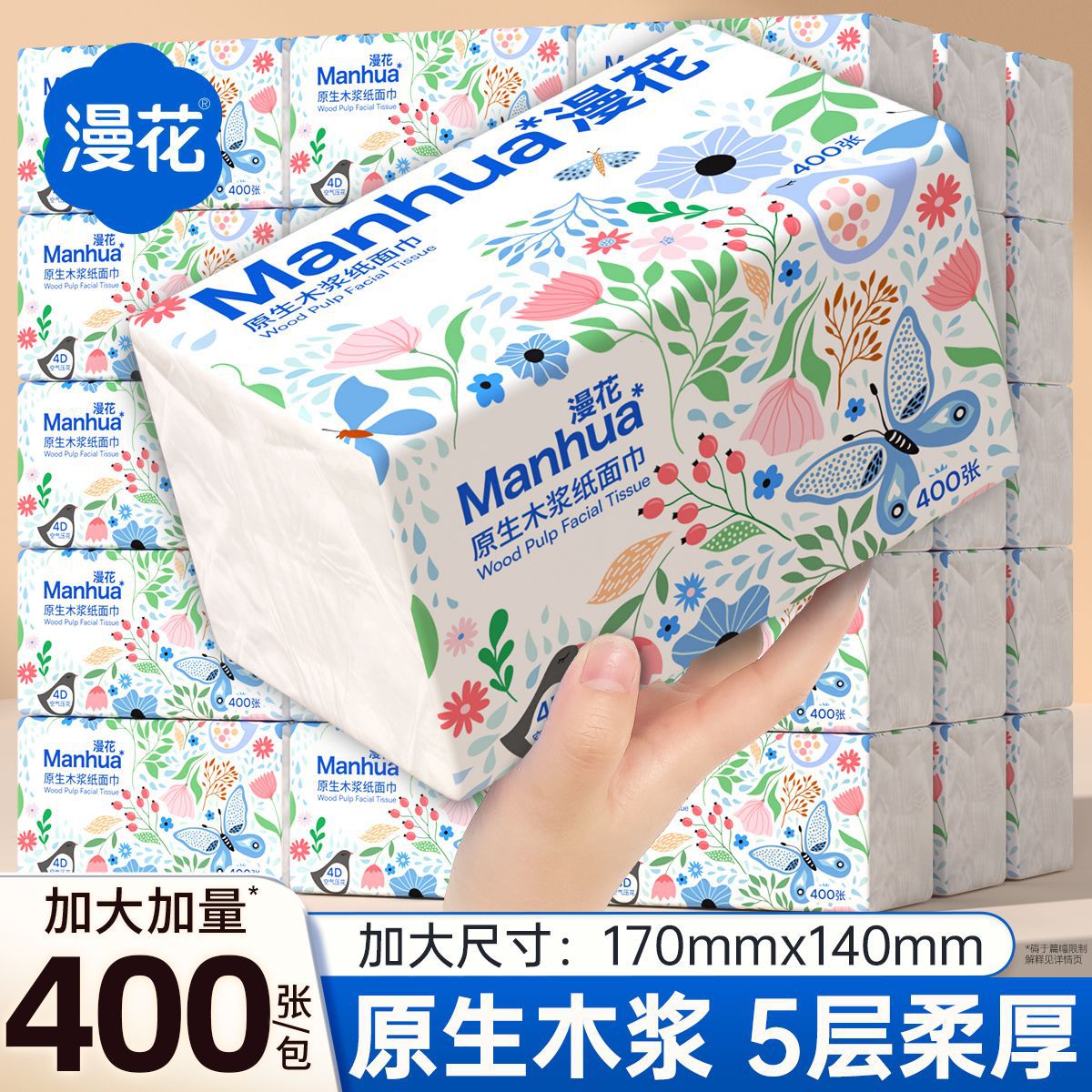 漫花400张抽纸大包餐巾纸家用整箱批发面巾纸学生擦手厕纸卫生纸