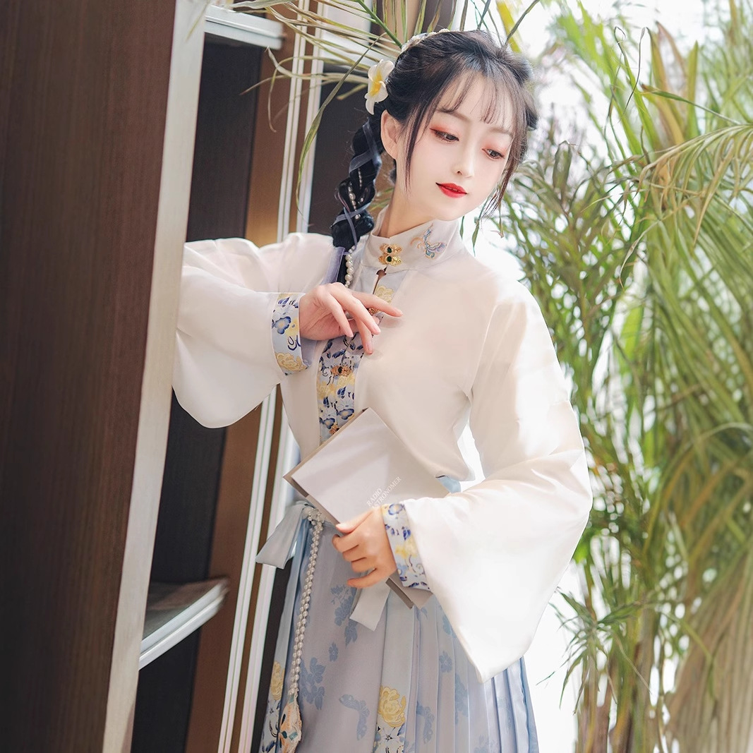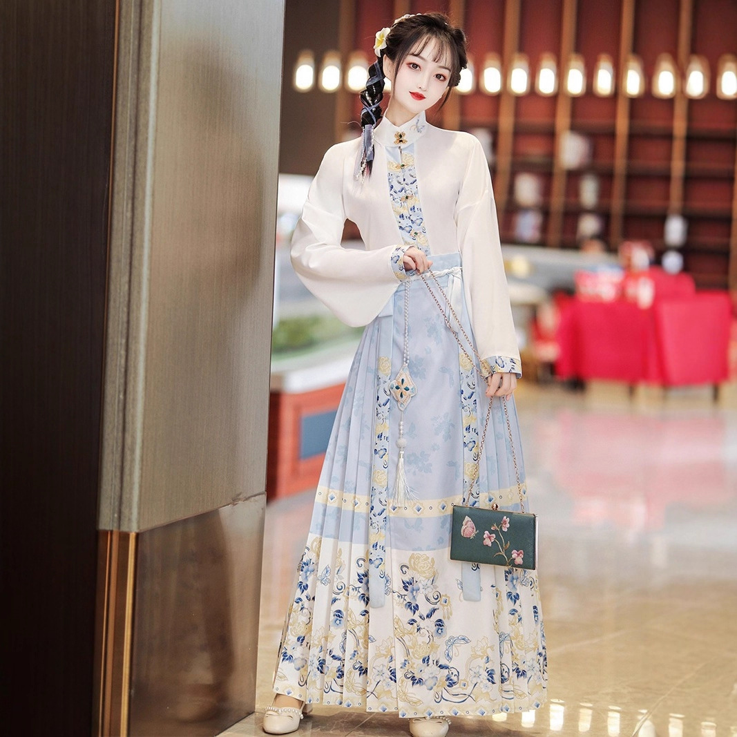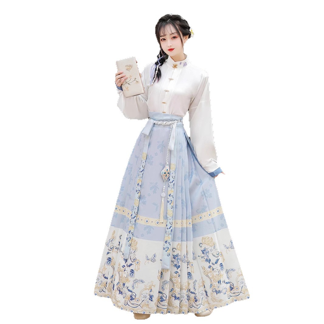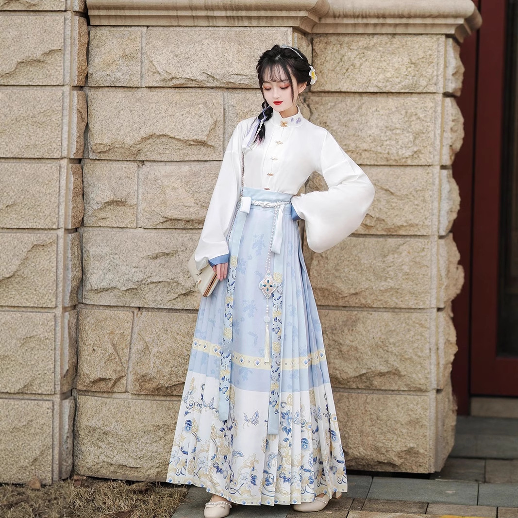 | 颜色 | 蝶恋-蓝色 【印花对襟衫+马面裙】 | 颜色 | 蝶恋-蓝色【对襟衫+马面裙】 |