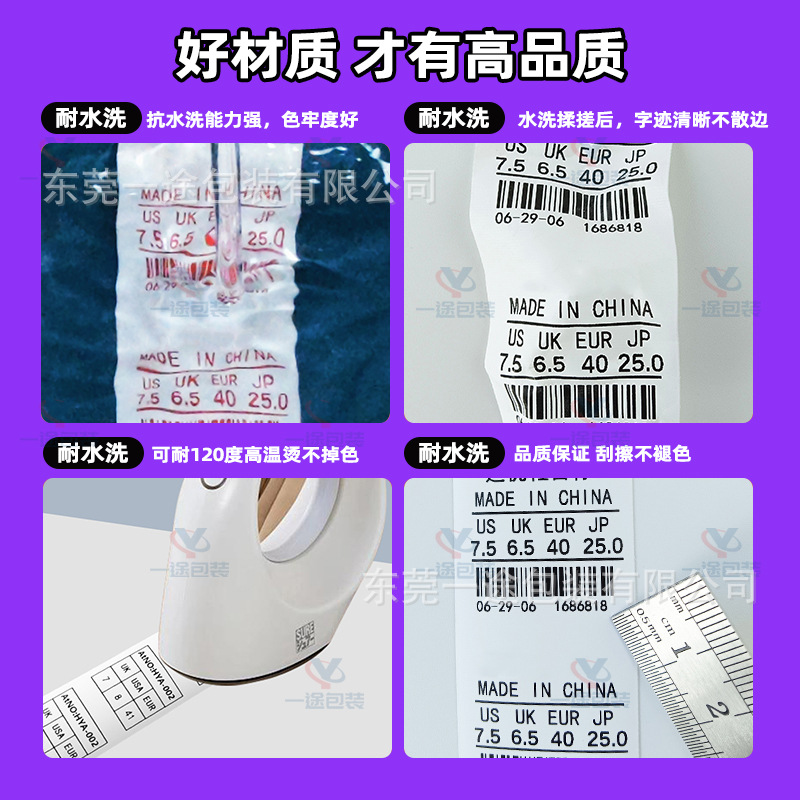 产品标题热压鞋舌不干胶标签贴纸印刷