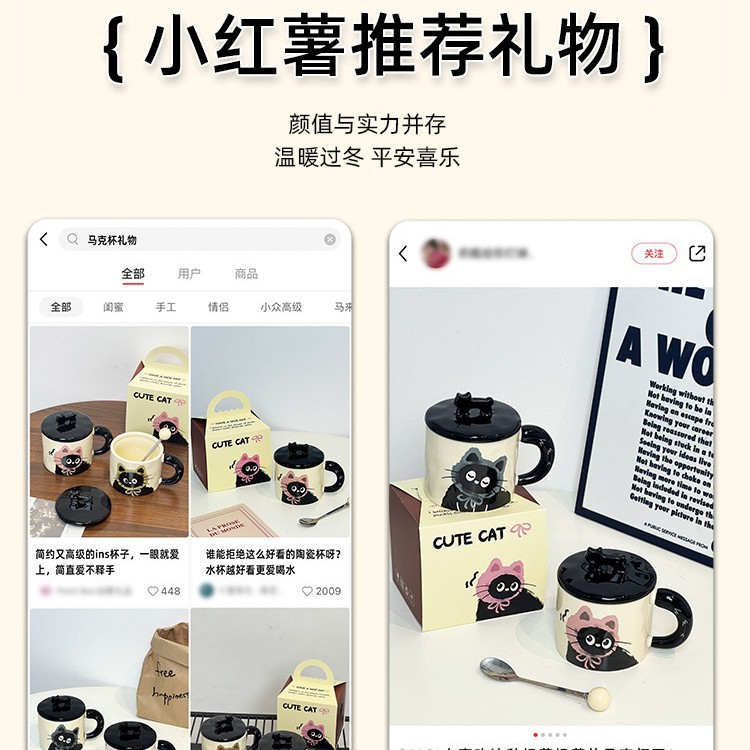 马克杯带盖可爱陶瓷水杯办公室咖啡情侣杯子女新款2025礼盒伴手礼
