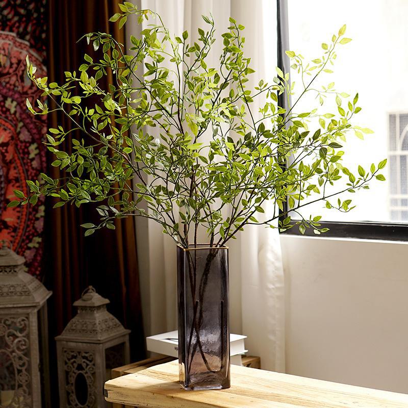 颜色2支绿色南天竹/方形灰色金口玻璃花瓶
