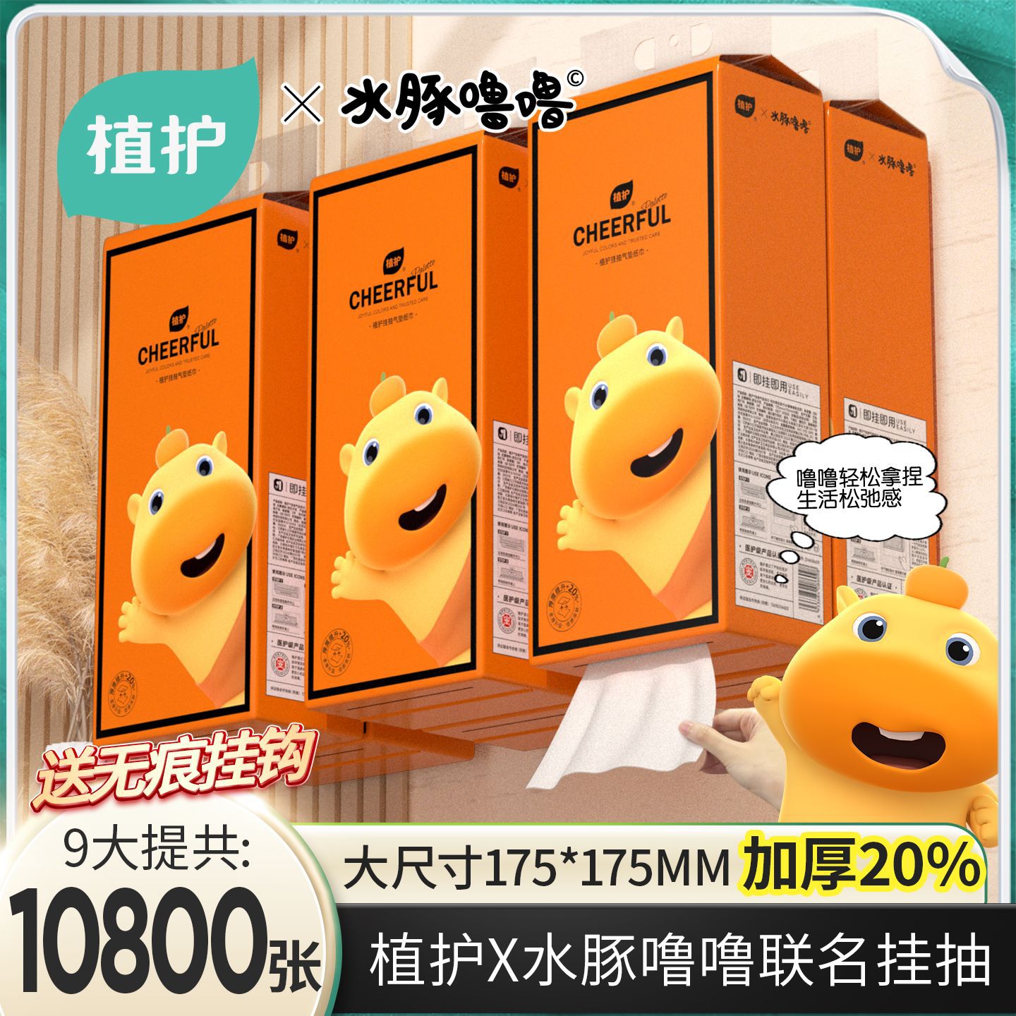 | 产品规格 | 【植护悦色橙挂抽】买就送挂钩-【联名款-款式再加厚】8提/共9600张 | 产品规格 | 【植护悦色橙挂抽】买就送挂钩-【联名款-款式再加厚】4提共4800张 |